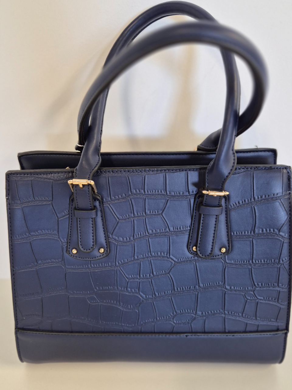 Descrizione prodottoDecisa, elegante e irresistibilmente raffinata: la borsa Bette è l’emblema dello stile senza tempo. Realizzata in ecopelle di alta qualità, conquista per il suo design strutturato e per il frontale impreziosito da una delicata stampa pitone tono su tono, che aggiunge un tocco di carattere e sofisticatezza. Il colore blu, profondo e luminoso, la rende un accessorio distintivo e versatile, perfetto per valorizzare ogni outfit con classe e personalità.