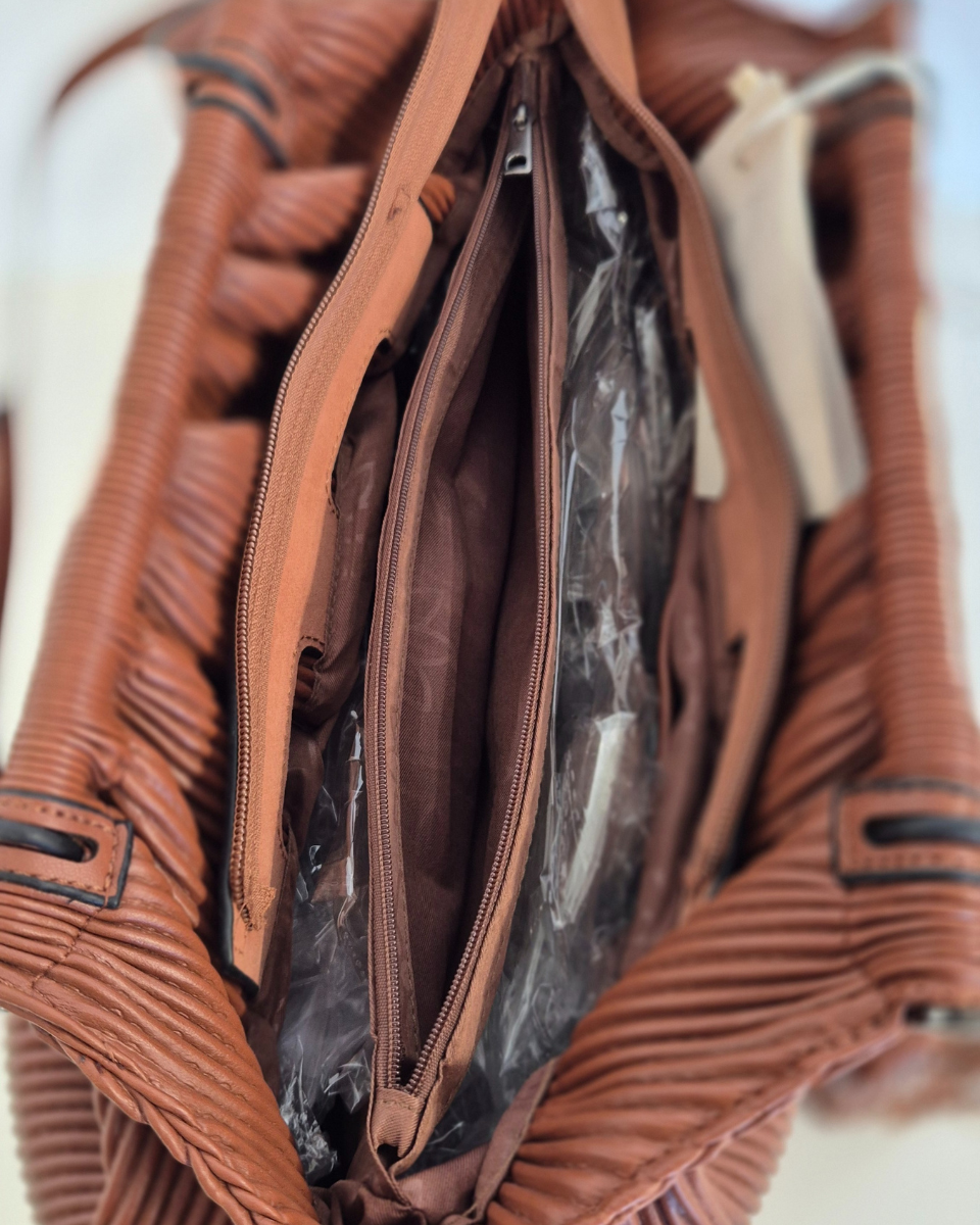 Descrizione prodottoLa borsa Arizona è un inno all’eleganza naturale e alla raffinatezza quotidiana. Realizzata in morbida ecopelle con un sofisticato motivo a costine, unisce stile e funzionalità in un design contemporaneo e armonioso. Il suo colore marrone caldo, ispirato ai toni della terra e del deserto, trasmette calore, equilibrio e carattere. La nappina decorativa aggiunge un tocco di movimento e personalità, rendendo Arizona un accessorio distintivo e versatile.