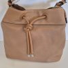 Dettagli: Foulard decorativo sui manici, pannello posteriore lavorato a righe verticali, tasca esterna con zip, anelli metallici dorati e cuciture curate