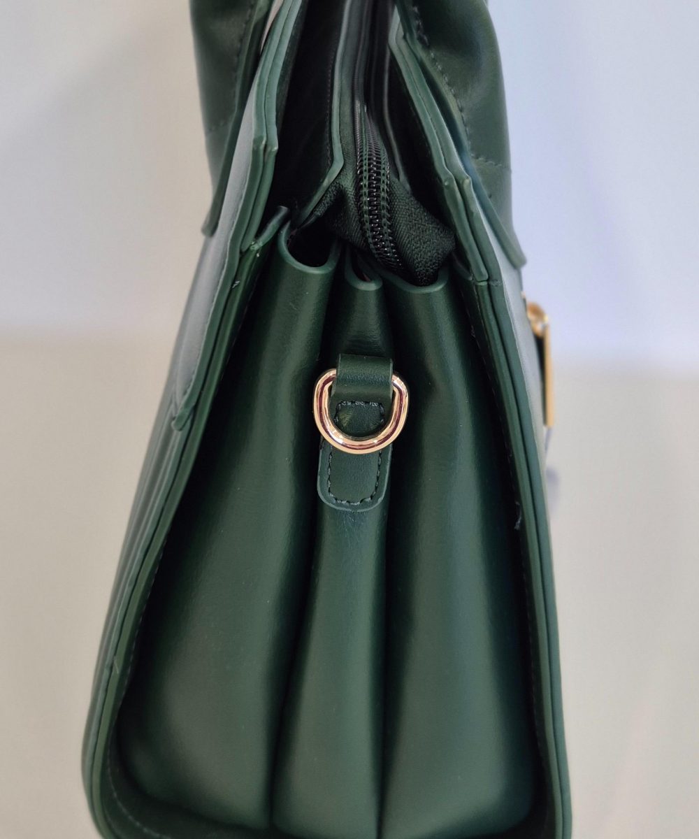 Elegante, strutturata e incredibilmente femminile: la borsa Giada col. Verde Bosco è pensata per accompagnare con stile le giornate più intense. Realizzata in morbidissima ecopelle di alta qualità, unisce una linea pulita e moderna a dettagli ricercati come il foulard annodato ai manici e il pannello posteriore lavorato a costine verticali. Il colore verde bosco, profondo e sofisticato, la rende un accessorio distintivo ma facile da abbinare, perfetto sia per l’ufficio che per il tempo libero.