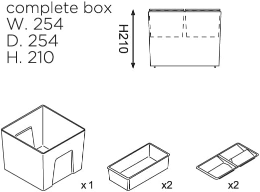 ONDABOX Kit di scatole multiuso removibili, composto da una scatola grande e due scatole medie con coperchio portaoggetti concepite per essere inserite nella scatola grande.