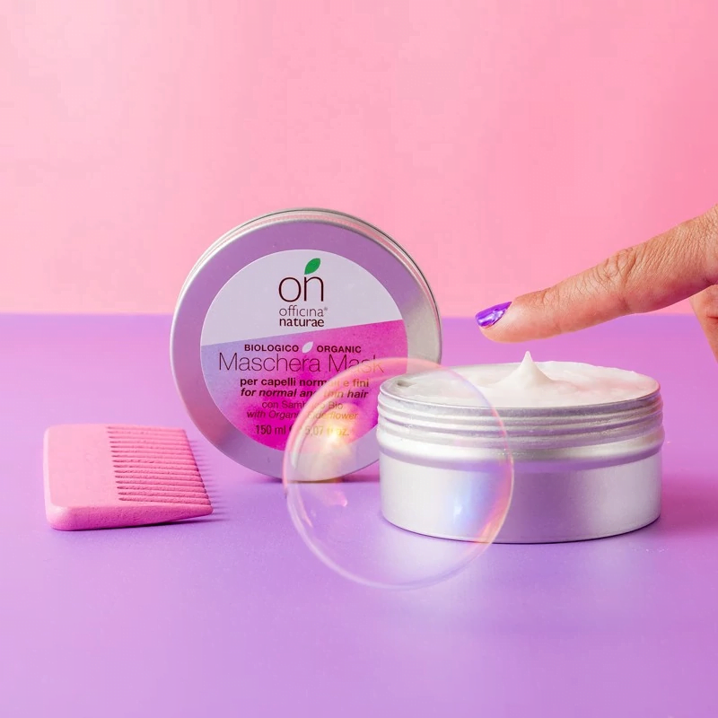 È una maschera bio capelli certificata, perfettamente adatta a quello che desideri, perché studiata appositamente per mantenere in buona salute i tuoi capelli normali o sottili: gli estratti bio di Sambuco e Viola e l’olio di Lino nutrono e idratano il capello e rinvigoriscono il cuoio capelluto.