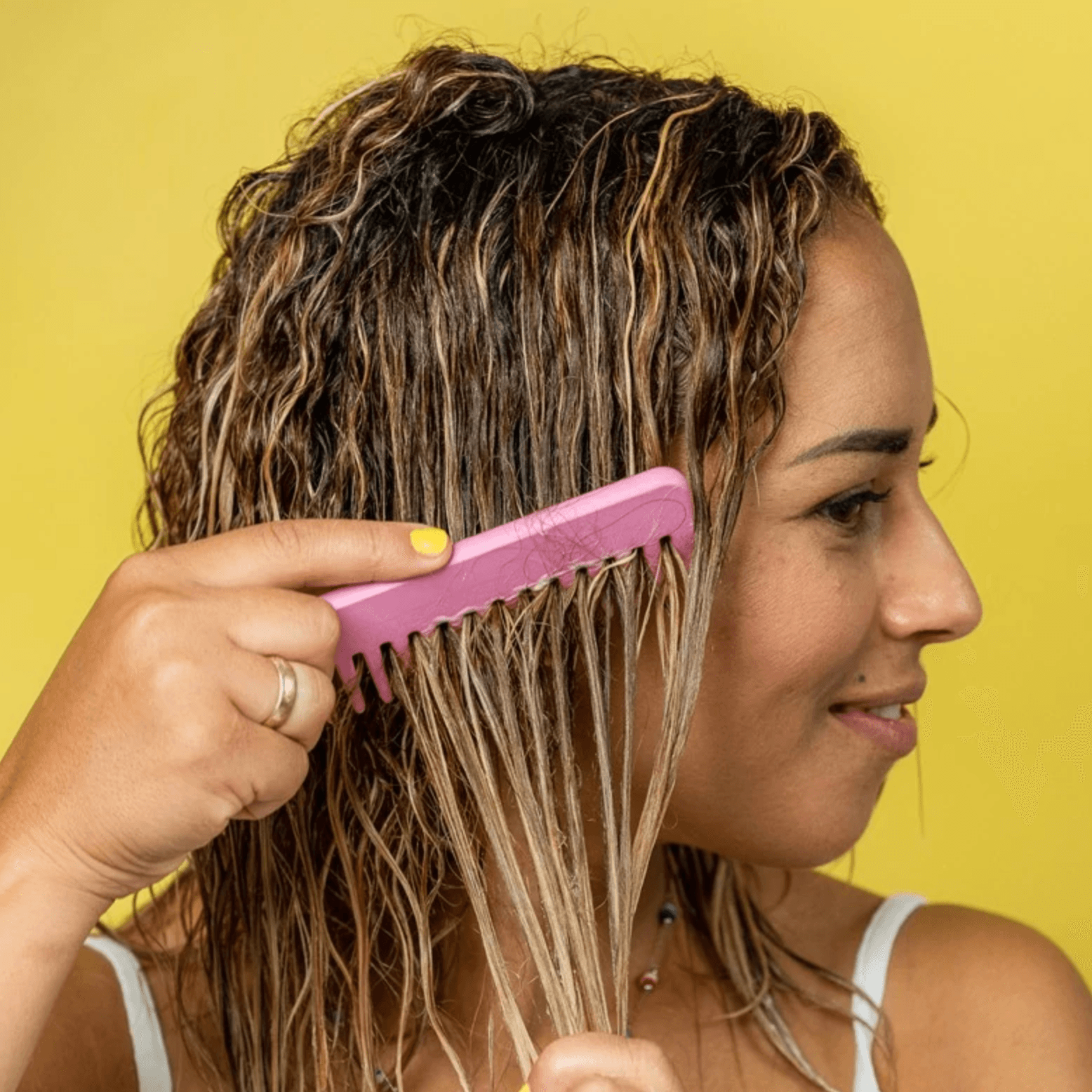 Il pettine in legno è perfetto anche per applicare la maschera adatta al proprio tipo di capelli. Se hai i capelli ricci, per esempio, è ideale per distribuire bene la Maschera per Capelli Ricci, districando ciocca dopo ciocca.