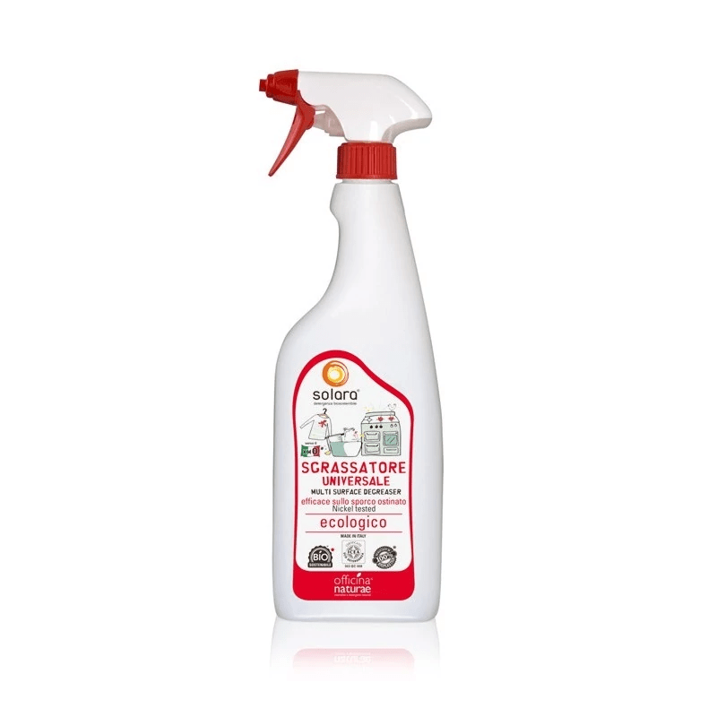 Fra gli sgrassatori ecologici, scegli questo sgrassatore, perché ha una formula altamente concentrata, con tensioattivi di origine vegetale italiana e con prestazioni paragonabili ai più famosi sgrassatori convenzionali. Metti lo sgrassatore universale della linea Solara alla prova: in cucina, sgrassa efficacemente stoviglie, fornelli, forno, cappa, piani di lavoro.