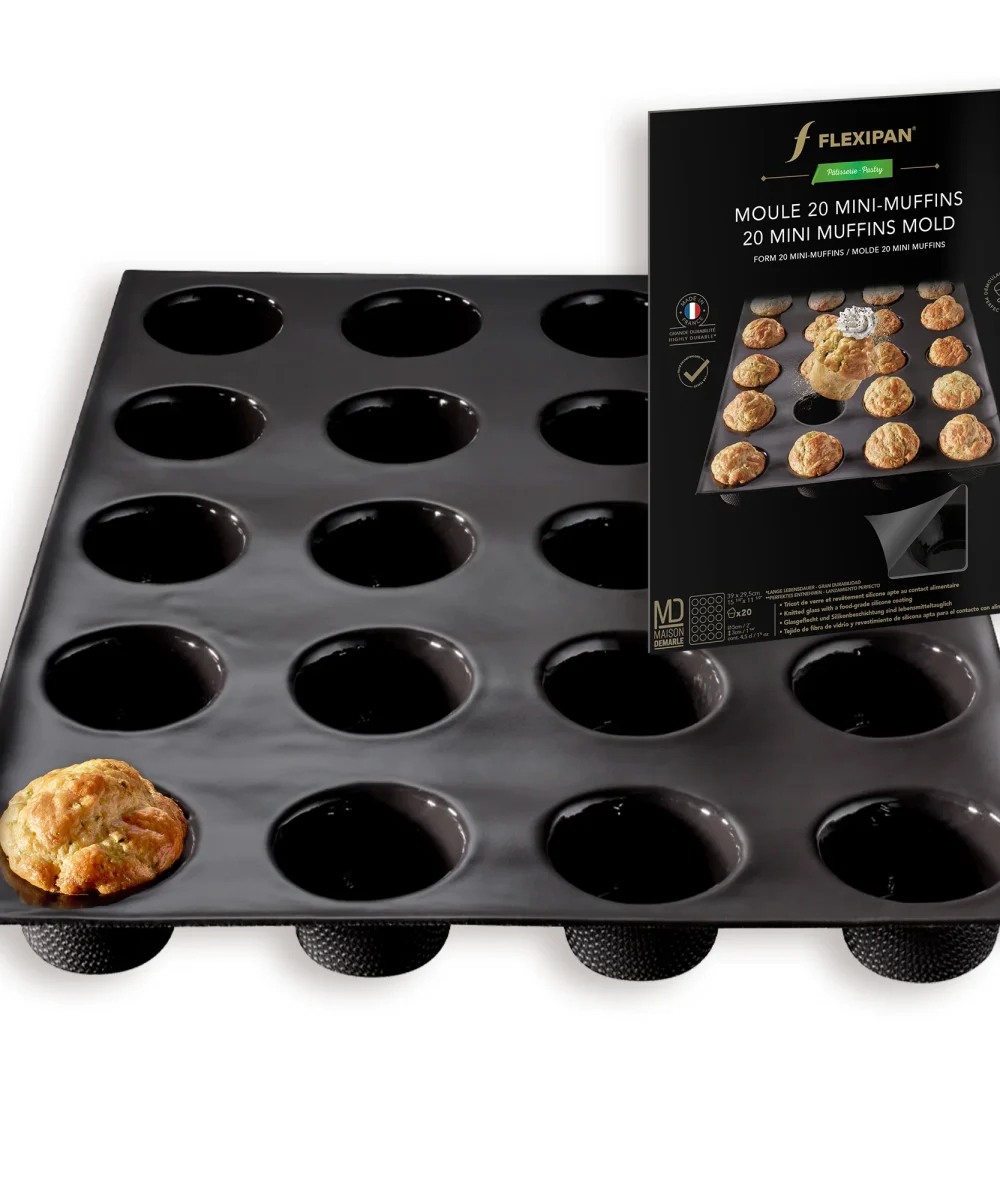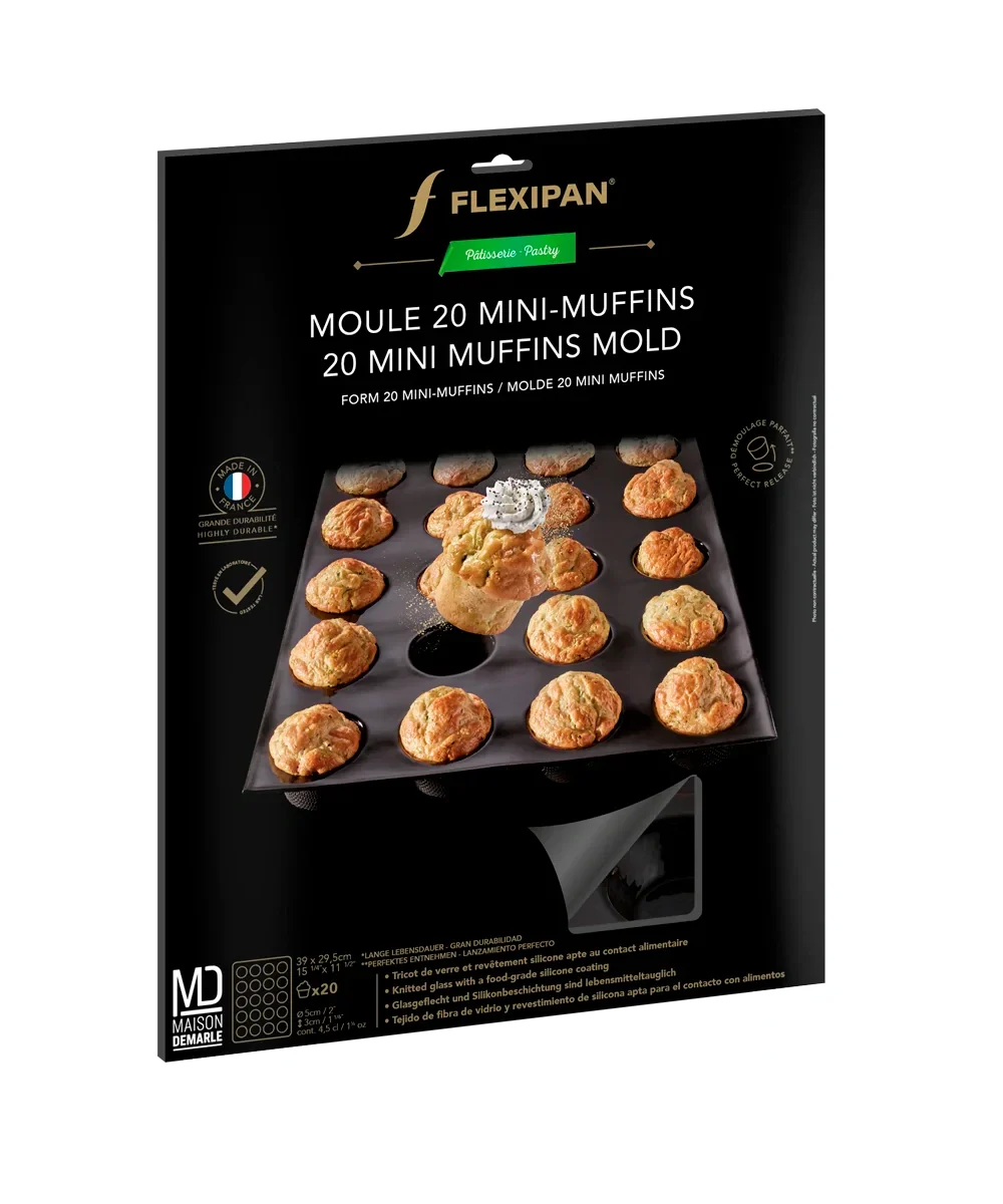 Scatena la tua creatività in cucina con lo stampo Flexipan® per 20 mini-muffin, perfetto per preparazioni monoporzione dolci o salate!